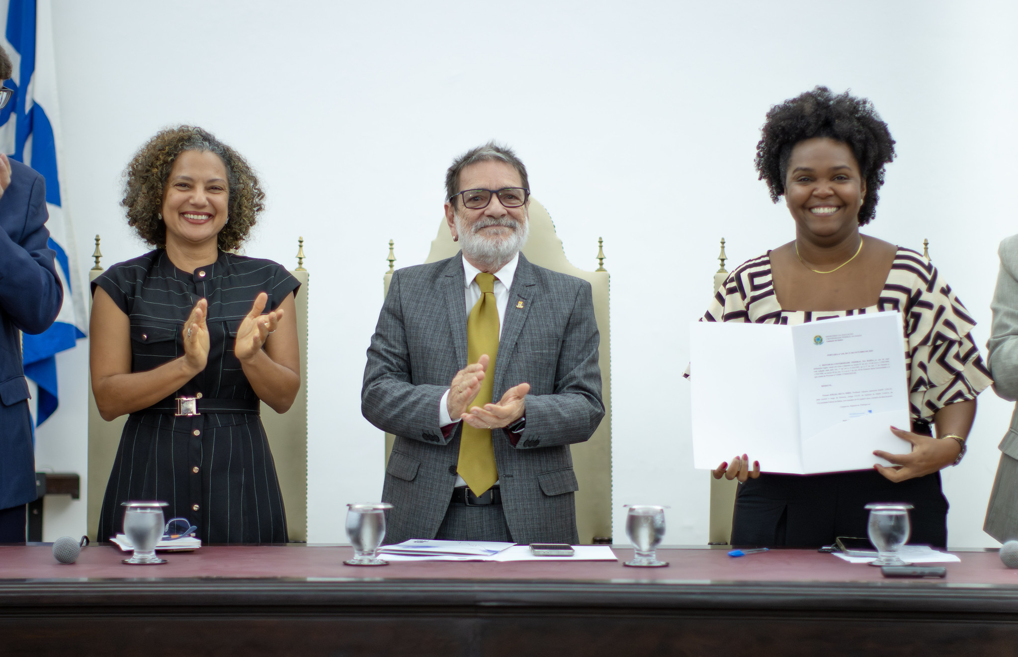 “Mas, a UFBA é mais do que isso. Ela sabe que, junto à excelência, precisamos da inclusão, precisamos abrir os nossos caminhos. Não é pouco termos diretoras e diretores que representam o povo negro desta terra chamada Bahia. É muito. E que seja assim cada vez mais”, desejou Miguez.