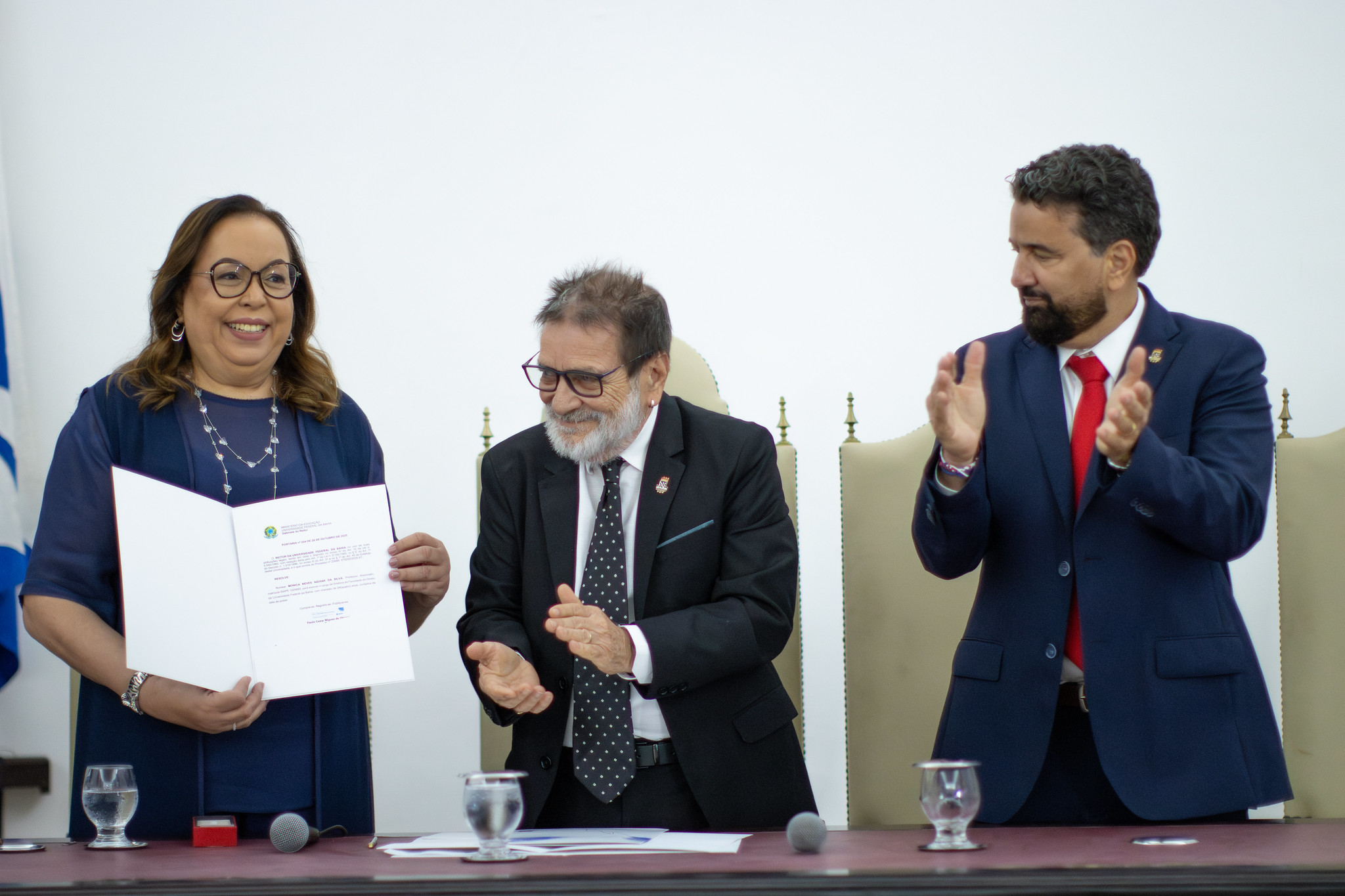 Para o reitor, o ato de transmissão ganhou o reforço da equiparação de gênero: “É um orgulho, como ex-aluno da Faculdade de Direito, dar posse à primeira mulher eleita diretora, quebrando um ciclo de 134 anos de gestão.